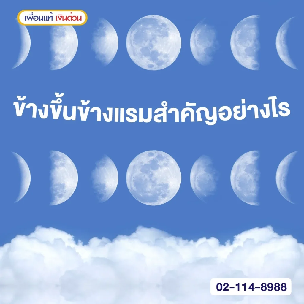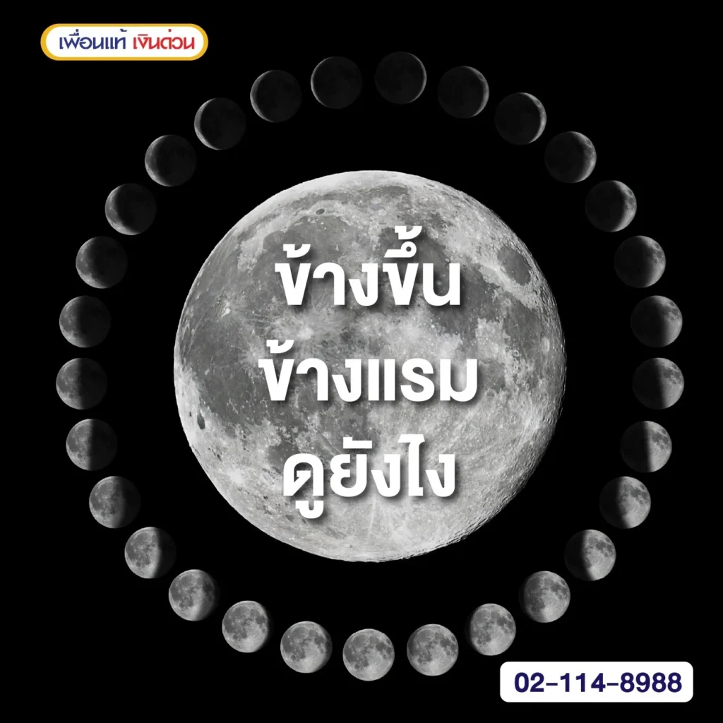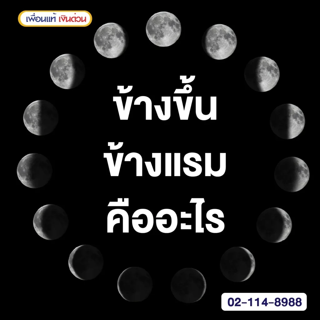 “ข้างขึ้นข้างแรม” หมายถึง การเปลี่ยนแปลงของดวงจันทร์เมื่อดวงจันทร์เริ่มมีแสงสว่างเพิ่มขึ้น ตั้งแต่ new moon ไปสู่ full moon ในช่วงนี้ ดวงจันทร์จะดูใหญ่ขึ้นและสว่างขึ้นในท้องฟ้าของคืนไปเรื่อย ๆ การเปลี่ยนแปลงนี้จะผ่านไปในระหว่างข้างแรมที่สว่างขึ้น ซึ่งสามารถเห็นได้ในรูปแบบต่าง ๆ เช่น crescent, first quarter, และ gibbous จนถึงจันทร์เต็มดวง (full moon) ที่ทั้งหน้าดวงจันทร์ถูกมองเห็นจากโล