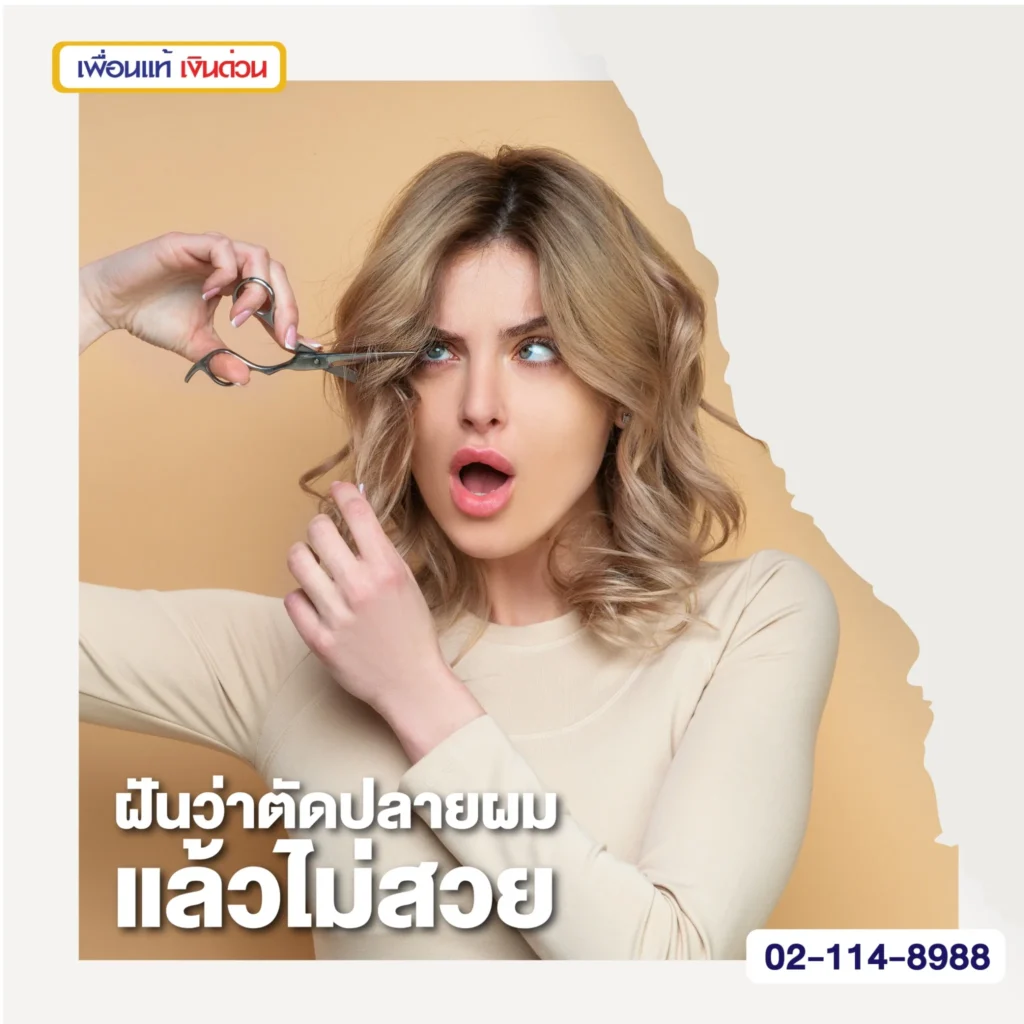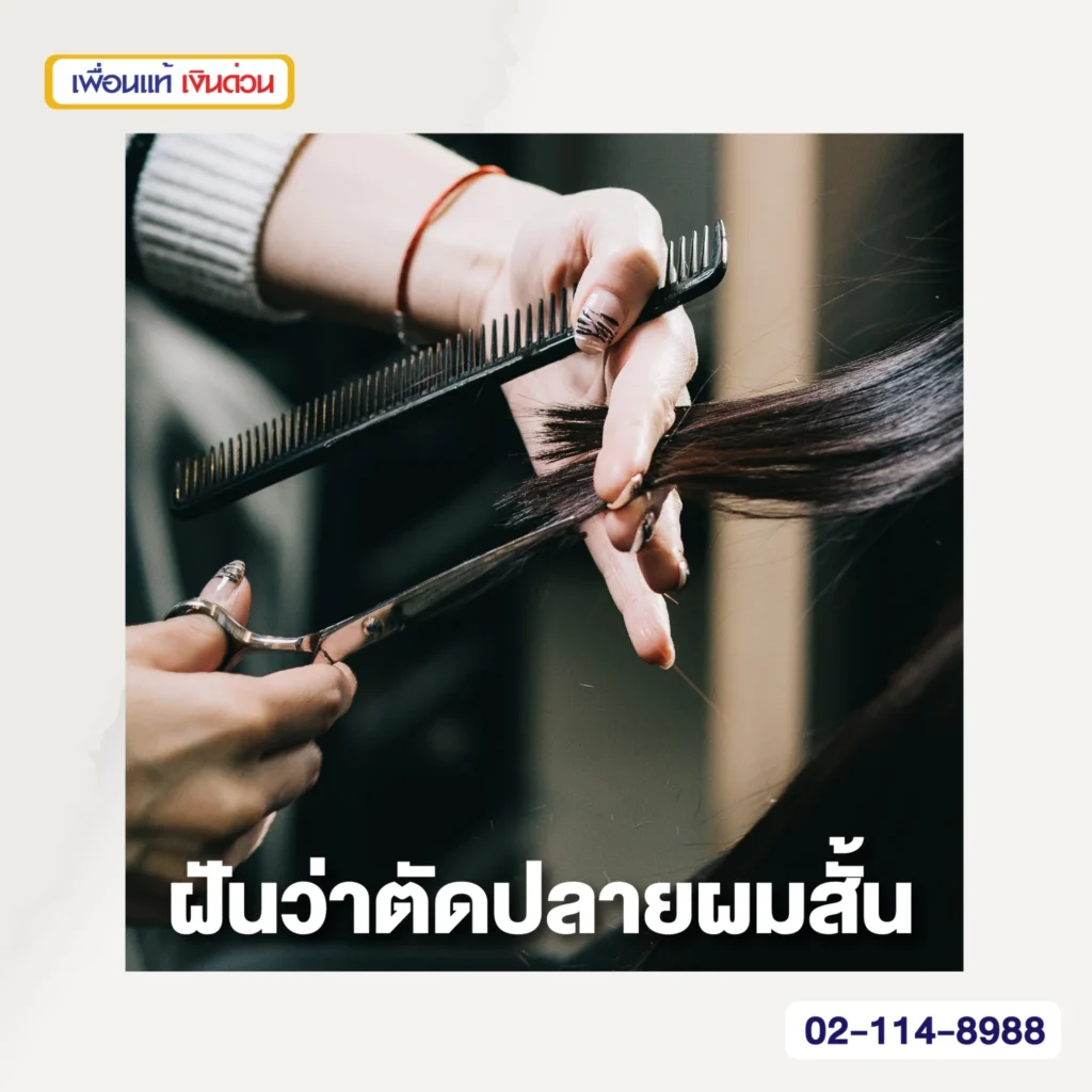 ฝันว่าตัดปลายผมทำนายฝันว่าจะมีอนาคตข้างหน้า มีโชคลาภในการเล่นการพนัน และมีโอกาสขยายธุรกิจ ความฝันยังบ่งบอกถึงการปรับปรุงสุขภาพสำหรับตัวคุณเองและญาติของคุณ ในด้านการเงิน มีโอกาสสร้างรายได้พิเศษจากงานและความสามารถของคุณ แม้ว่าควรใช้ความระมัดระวังเพื่อหลีกเลี่ยงการใช้จ่ายมากเกินไปในเรื่องกฎหมาย ความฝันนี้ทำหน้าที่เป็นสัญญาณเชิงบวก กระตุ้นการกระทำที่ทันท่วงทีและขยันขันแข็งในด้านต่างๆ ของชีวิต