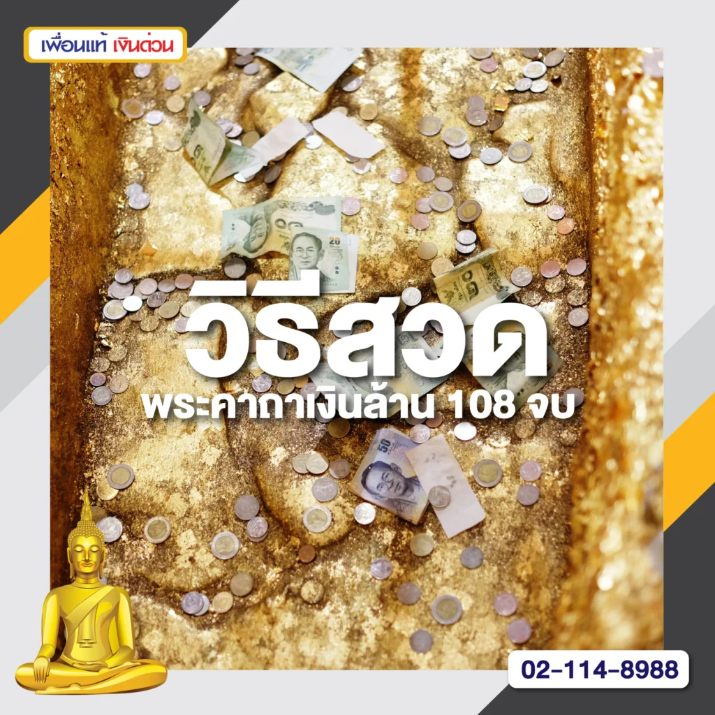 คาถาเงินล้าน 108 จบ เป็นบทสวดที่ถูกสร้างขึ้นเพื่อเสริมความเป็นบวกทางการเงินและโชคลาภในชีวิตของผู้สวด หมายถึงการสวดคาถาเงินล้านในแบบ 108 จบ เพื่อสร้างพลังบวกทางจิตใจและมุ่งหวังให้เกิดการเงินที่ดีขึ้น วิธีการนี้ถือเป็นทางเลือกทางจิตวิญญาณที่ช่วยเสริมสร้างสถานะทางการเงินที่ประสบความสำเร็จในชีวิตประจำวัน การสวดคาถาเงินล้าน 108 จบ มีความเชื่อว่าจะสร้างคลื่นพลังทางจิตใจที่ส่งผลให้เกิดโชคลาภและความรุ่งเรืองทางการเงินในทุกๆ ด้านของชีวิตผู้ที่ศรัทธาและนำมาสู่ความสำเร็จทางการเงินในที่สุด